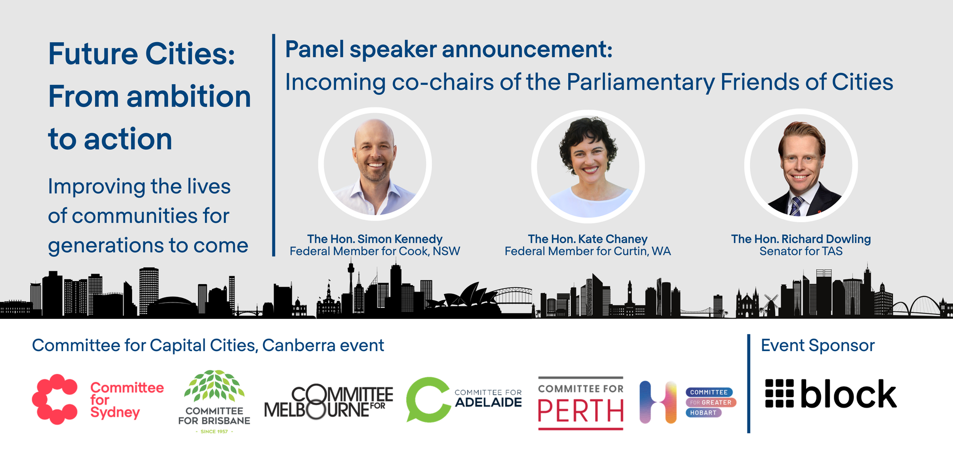 On 30 October, Committees for Capital Cities will host a special Canberra event at Parliament House. We are delighted to invite members to incorporate this event into their upcoming trip to Canberra, or book a visit to attend with me. Our capital cities, home to over two-thirds of the population and responsible for nearly 70% of the nation's GDP, are the engines of innovation, growth, and community. Together with Committees for Sydney, Brisbane, Melbourne, Adelaide and Greater Hobart, I invite you to an in-depth exploration of how cities can pave the way for a vibrant and sustainable future, catalysing a turnaround in our economic complexity and ensuring prosperity for all. Please reserve your place here.
