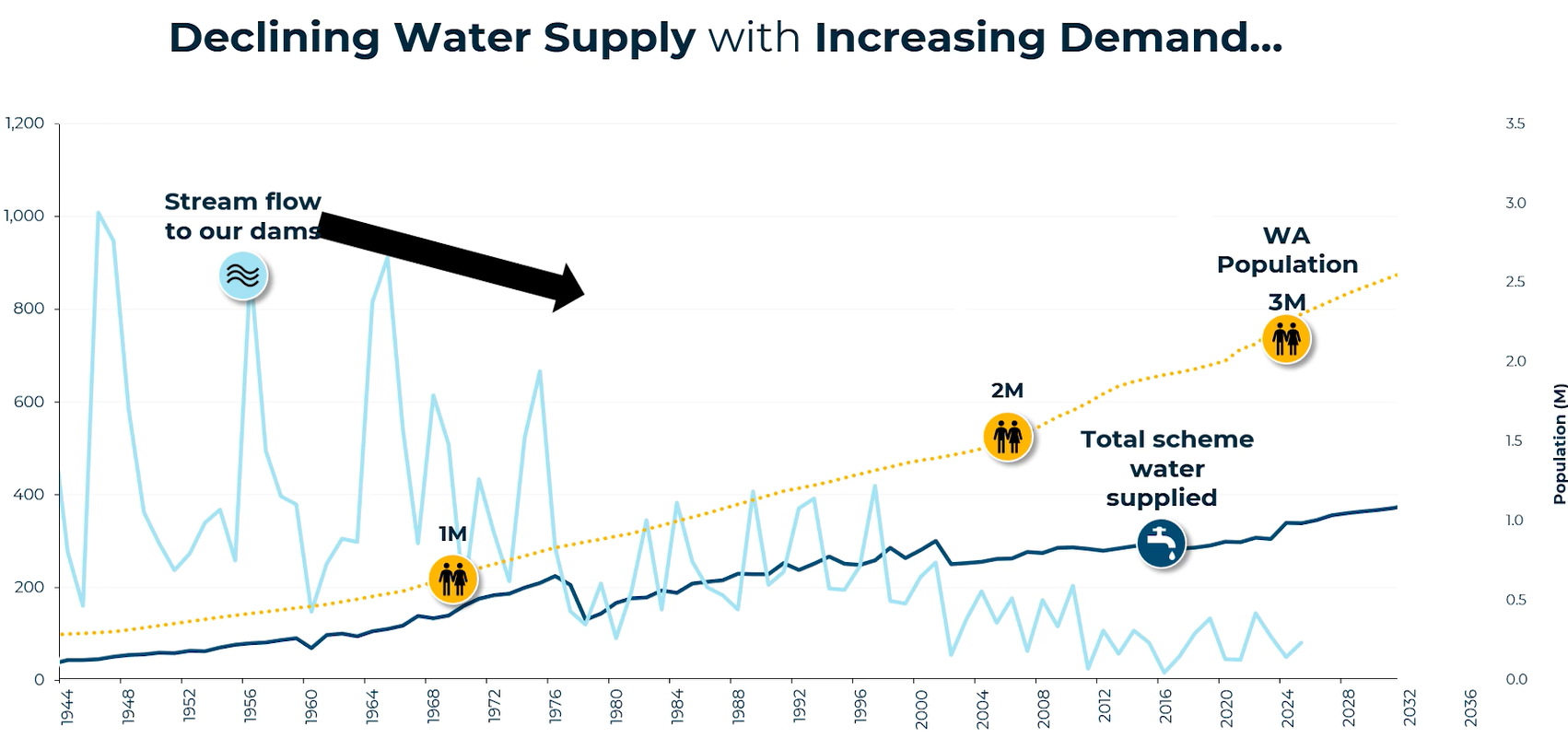 Coming fresh off National Water Week and Pat’s 2050 Summit spotlight, it’s clear that conversations about Perth’s water security need to stay front and centre, not just in times of crisis, but as part of how we plan for a city of over 3.5 million. With the population growing and water sensitivity declining, the question is: are we doing — and investing — enough to secure supply to 2050?